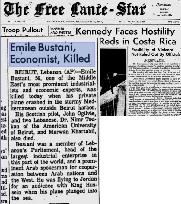 Bien que mieux connu pour ses banquiers et ses commerçants astucieux, le minuscule Liban possédait alors, avec Emile Bustani, un acteur industriel majeur du le monde arabe. Avec la contracting & Trading Co. (CAT), il était le patron le plus grand de toutes les entreprises industrielles du monde Arabe.