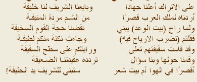 Ce long poème, qui est devenu très célèbre à l'époque, était en fait un document politique unique, il a non seulement ridiculisé Al-Risafi, mais a également affirmé, même à cette date précoce, des faits politiques de grande importance. Elle n'a pas seulement parlé de l'immigration juive et de ses dangers , mais aussi du rôle joué par la Grande-Bretagne à fragmenter les Arabes palestiniens, la Déclaration Balfour, et ses implications, etc..